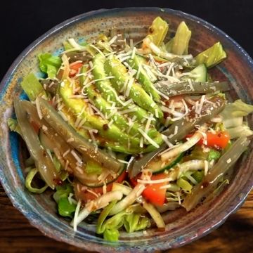 Cactus Pad, lettuce, tomato, avocado, onion, lime, cucumber, cheese and homemade dressing.