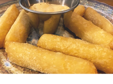 Must try pastry covered with cinnamon and sugar. Drizzled with caramel or chocolate.
