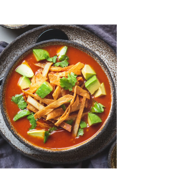 Chicken and Tomato broth topped with crispy corn tortilla, mozzarella cheese, sour cream and avocado.